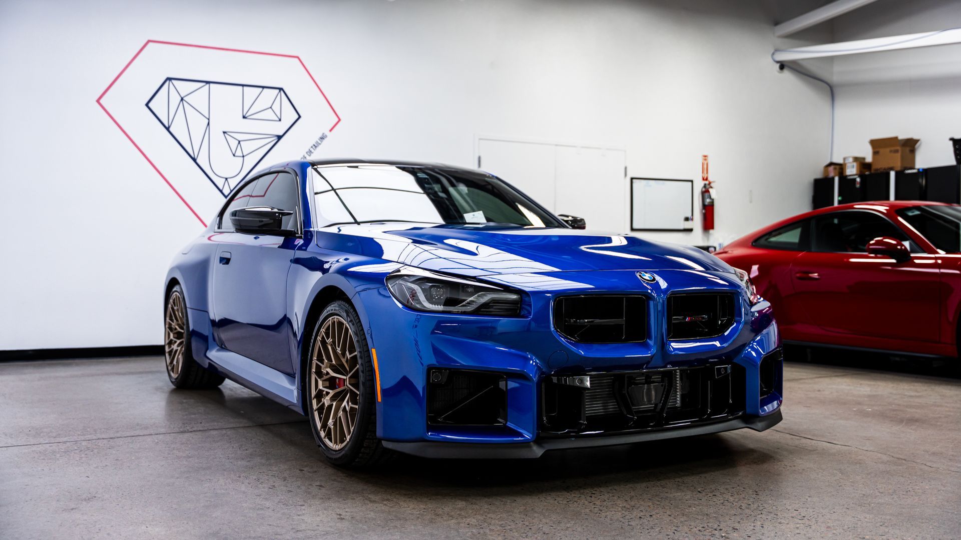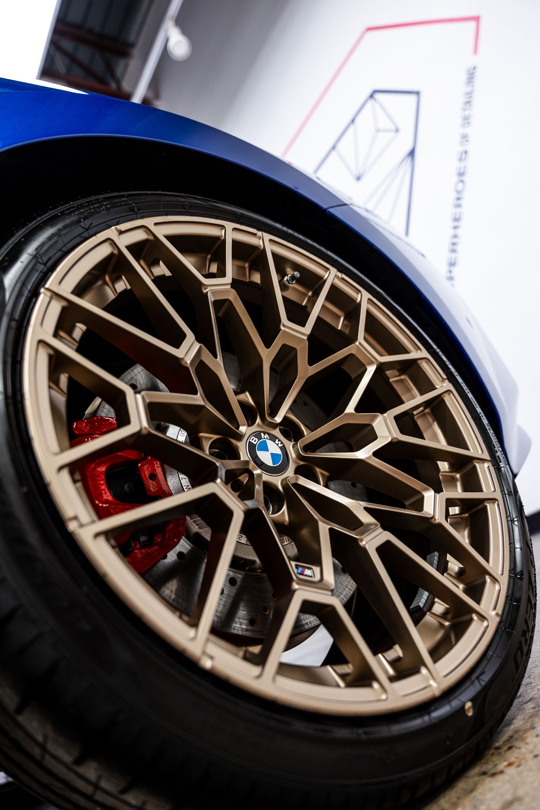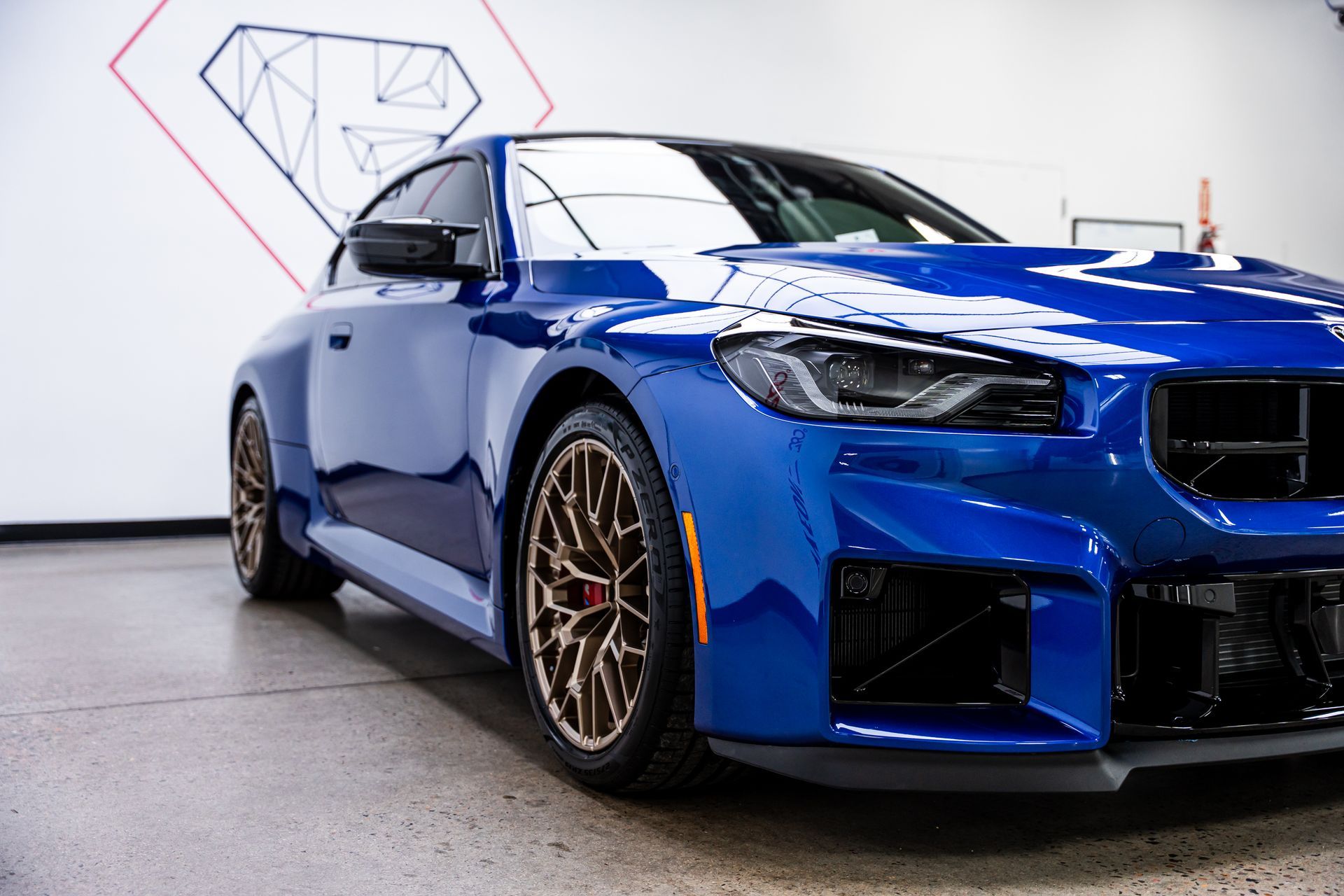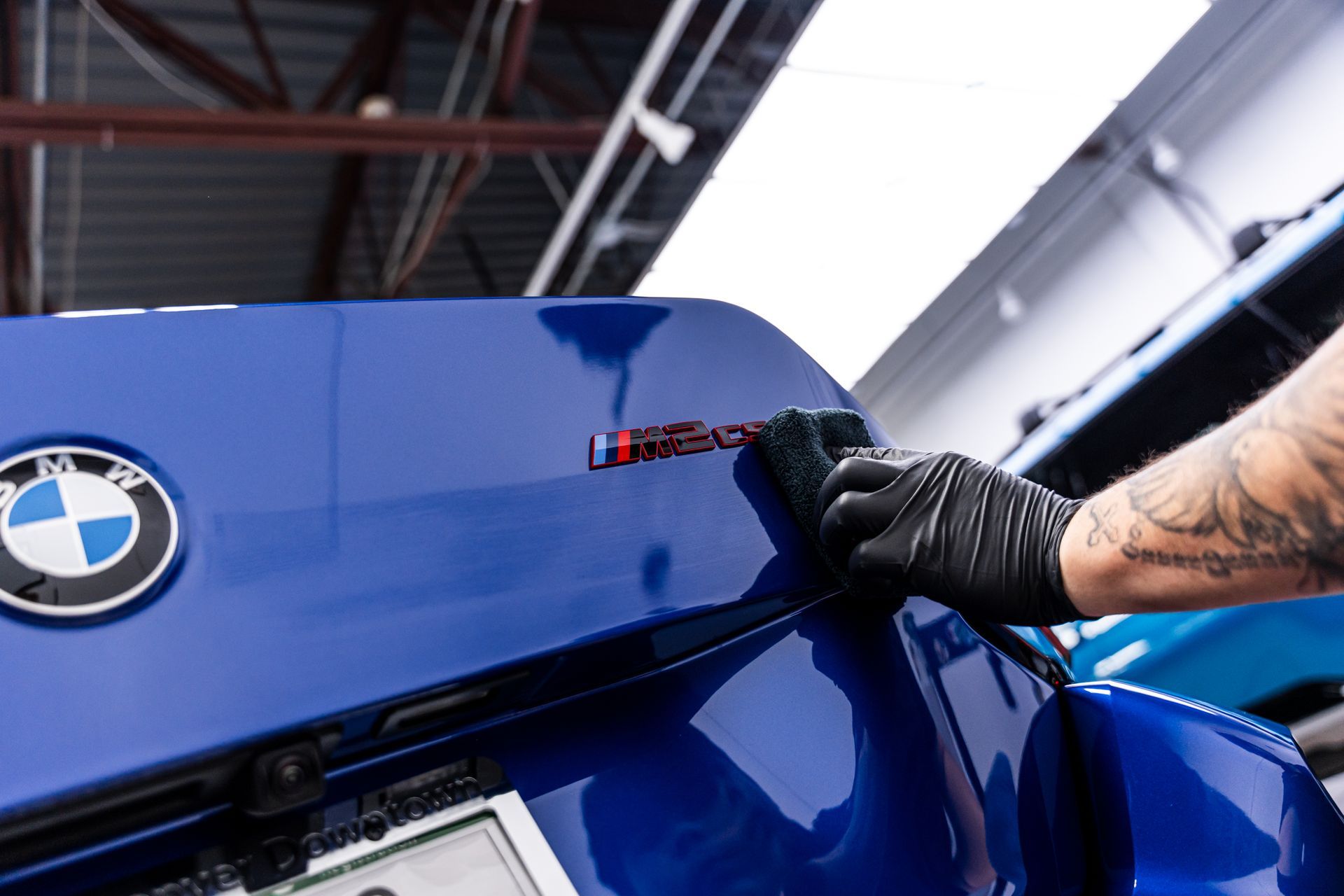 In order to get this Portimao Blue paint looking better than when it left the showroom, the client asked for our Level 2 Ceramic Coating System. This package includes a double layer of GYEON Ceramic Coatings on every painted or carbon fiber surface, as well as dedicated ceramic coatings for the wheels and windshield, effectively protecting and enhancing every exterior surface on this M2.