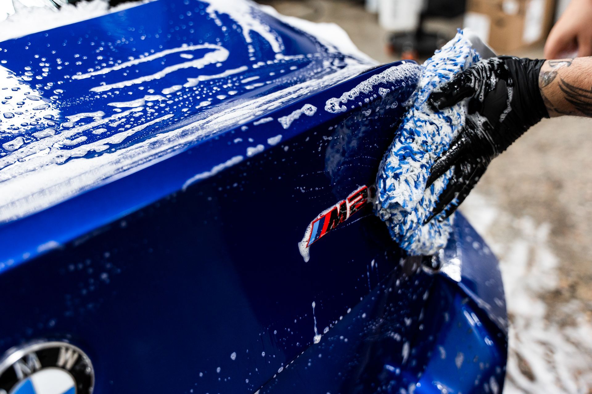 Once all of the foam is rinsed off, we’re able to start the contact wash on this M2 CS. This step begins with setting up the 2 bucket method: filling one bucket up with water and the other with water and a generous amount of