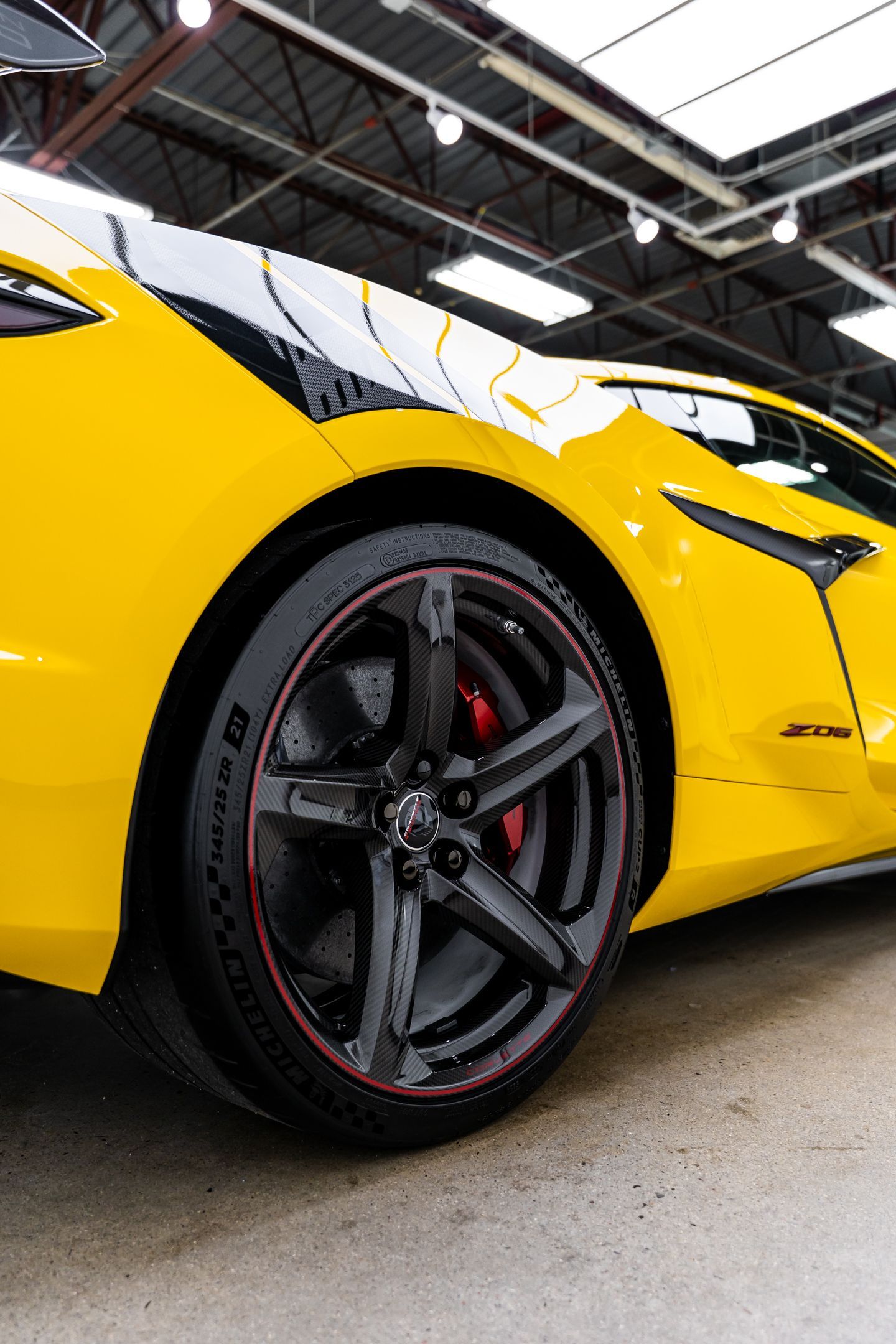 To finish off this project, our detailers will wipe down and vacuum the interior, apply a tire dressing and this Corvette Z06 is all ready for delivery.