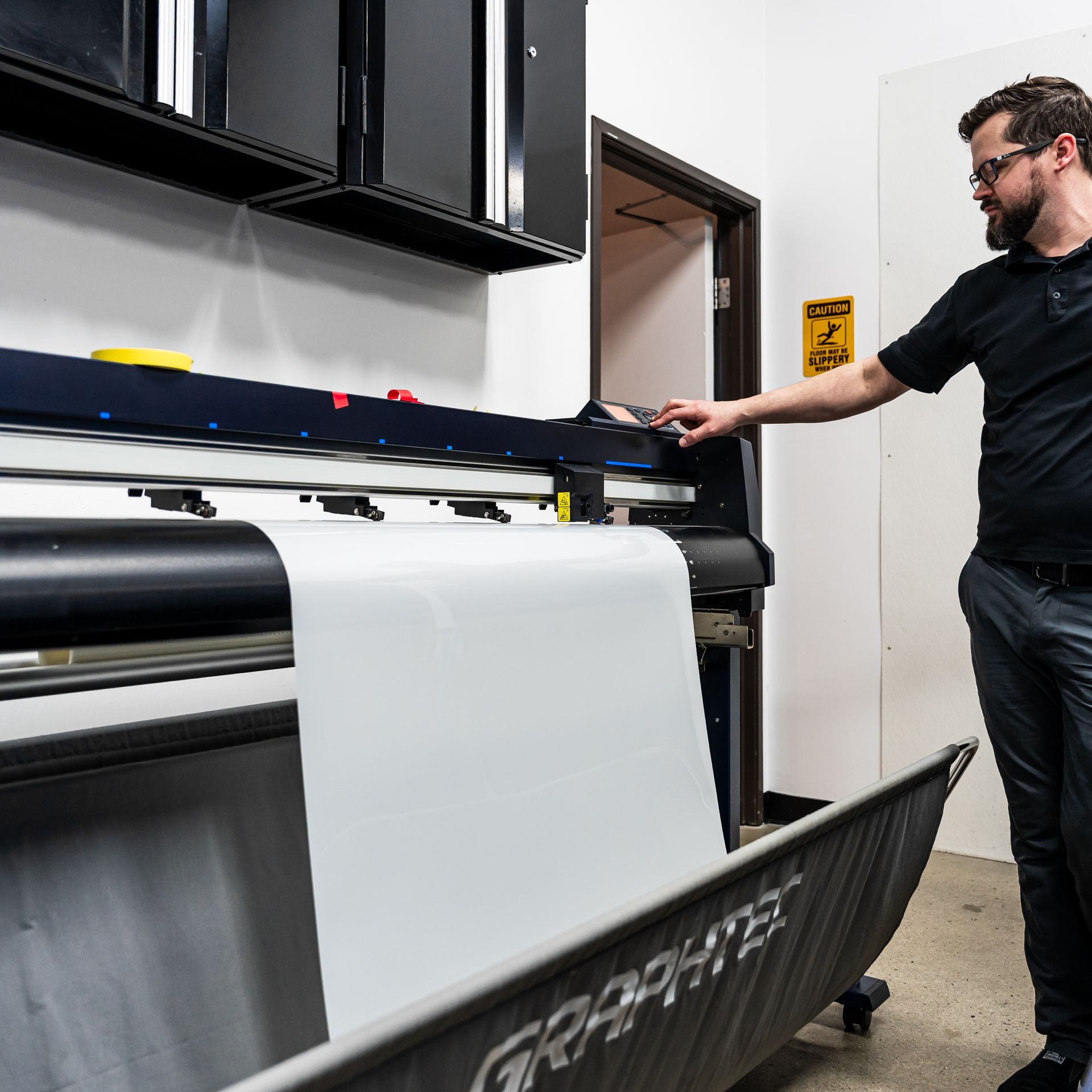 Before we start putting film on the vehicle, we’ll start at the computer. Using a specialized computer program and a large printer, commonly known as a plotter, we will design and print PPF patterns specifically designed for this SP3. By pre-printing PPF patterns, we can ensure that every panel will have a perfect fit and finish with no exposed paint. No stretching. No blades. No distortion.