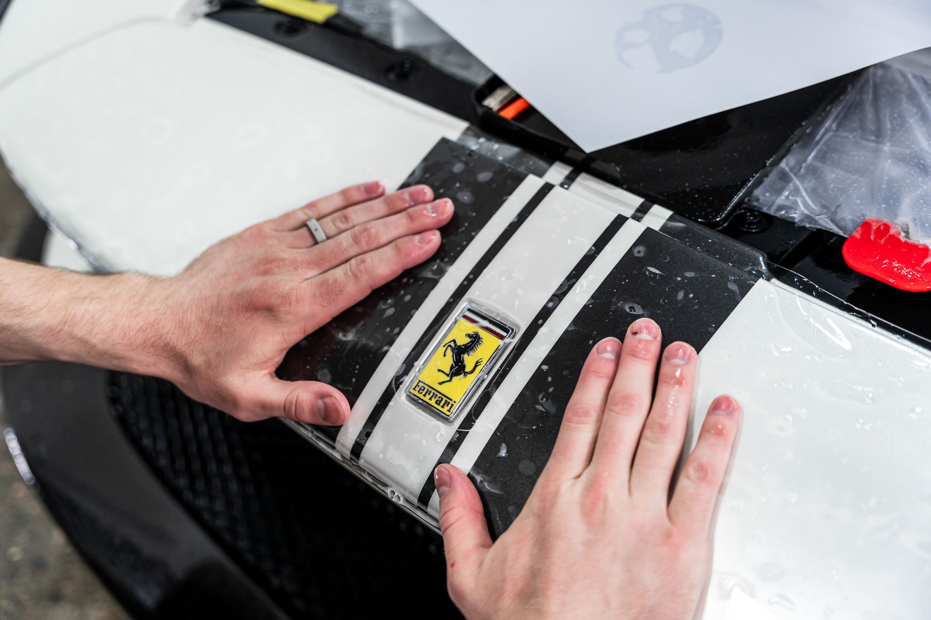 Due to exclusivity and rarity of this Ferrari, the natural choice for Paint Protection Film is our Full-Body Package. With this package, we will cover every exterior painted, carbon fiber and plastic exterior surface with durable PPF. Paint Protection Film provides long-term, robust protection from hazards such as rock chips or light scratching, ensuring that this special Ferrari will stay protected for at least 10 years.