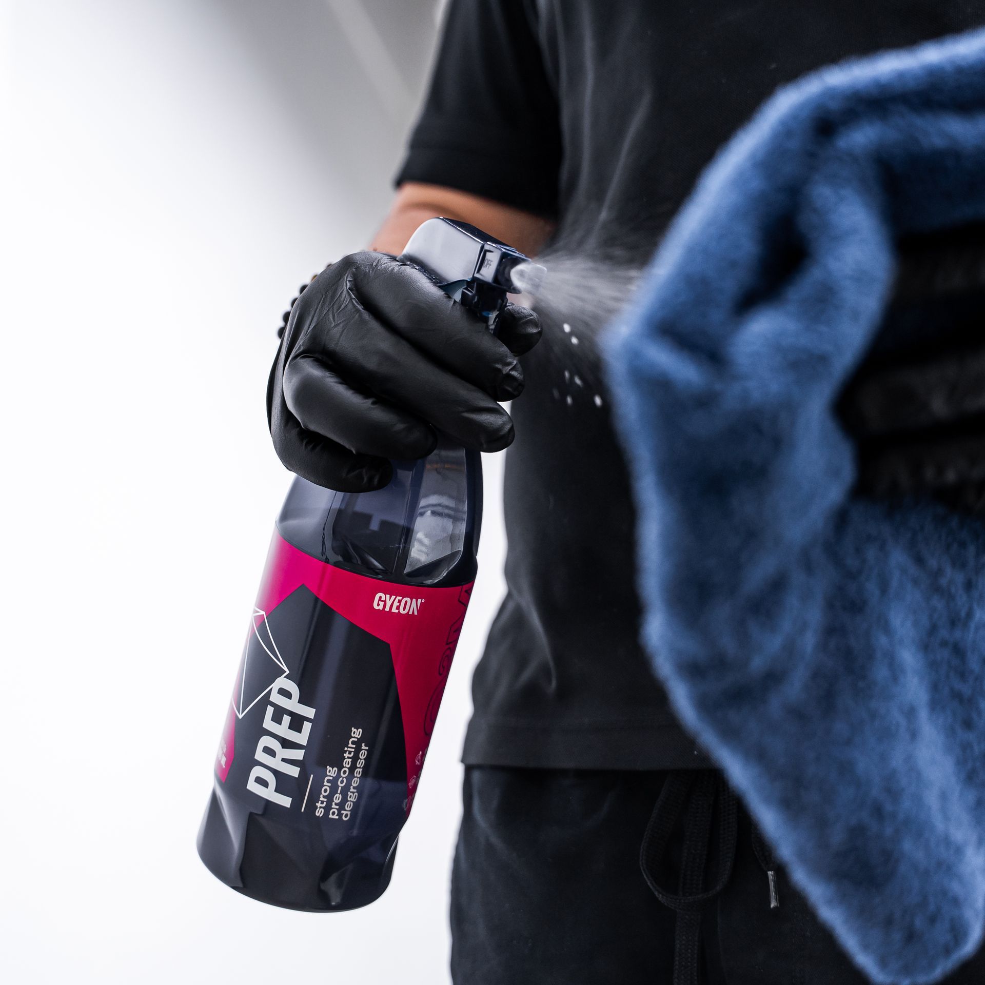 Because this vehicle now has Full-Body PPF, there’s no need to do a paint correction, meaning that we can just go straight into our coating prep. For this, we use two products: