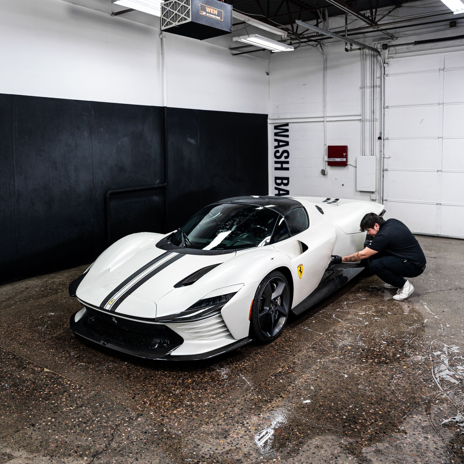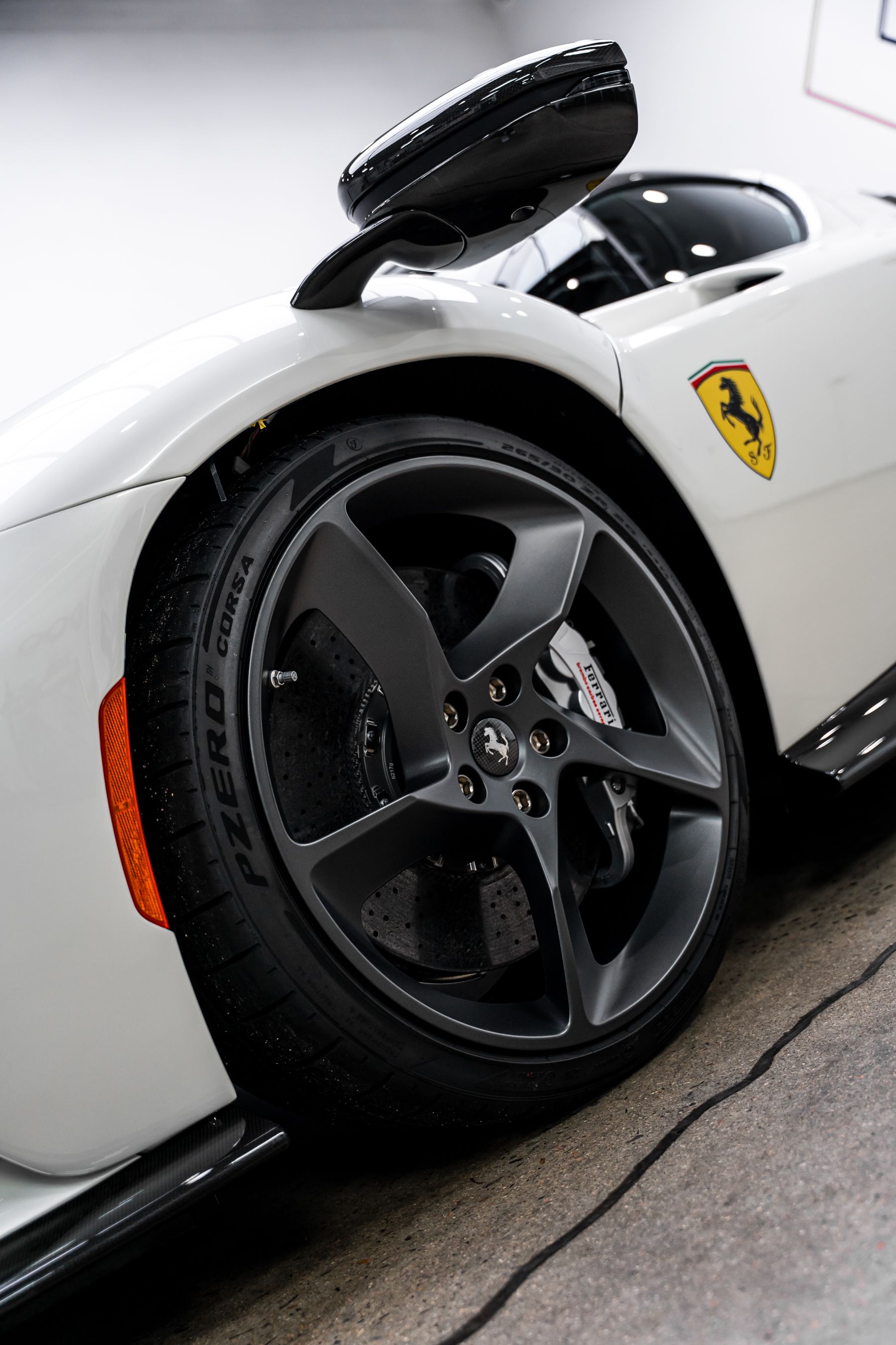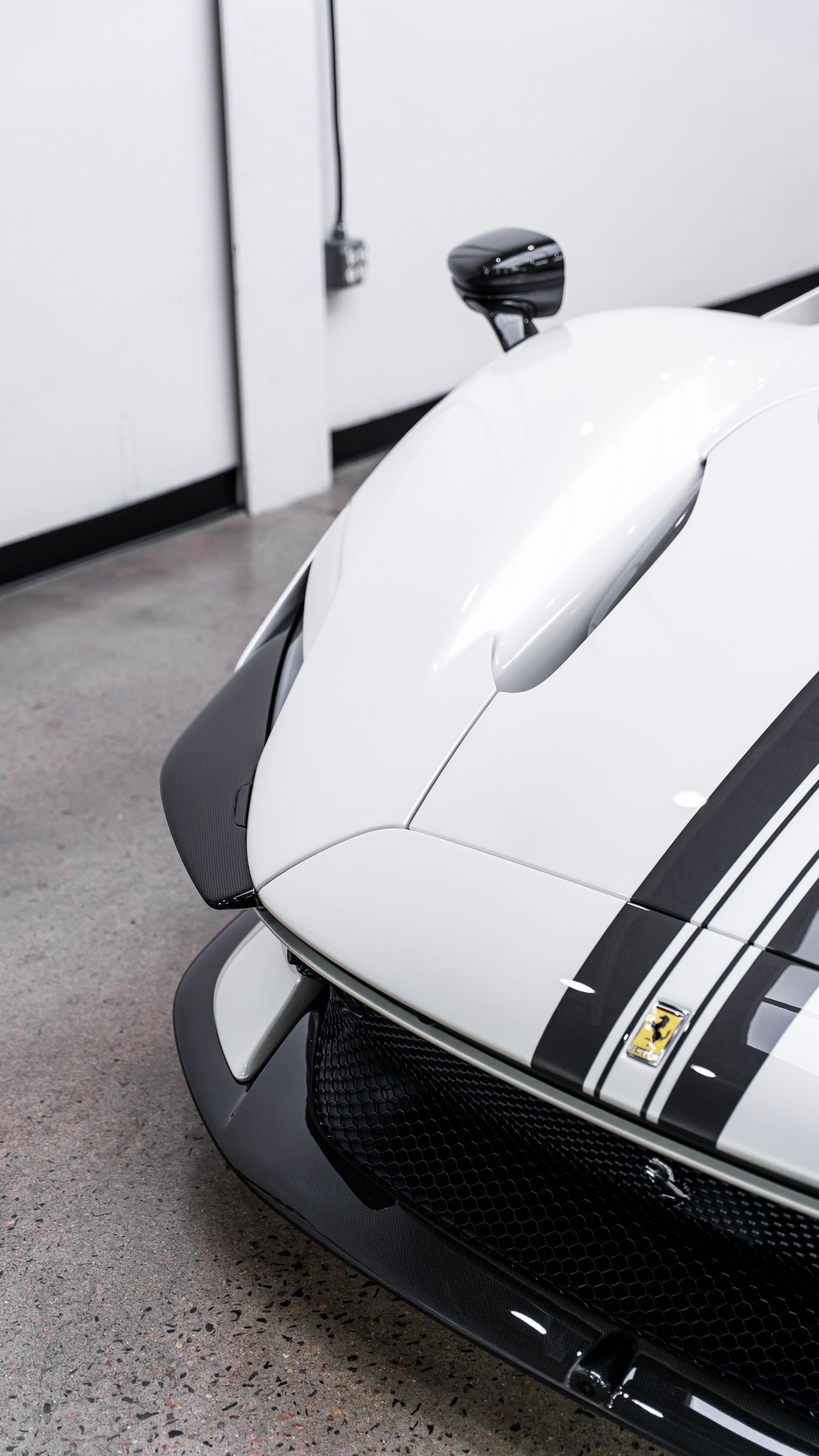 In order to give this SP3 Daytona maximum protection from whatever the road throws at it, this client opted for our Level 2 Ceramic Coating System. This is our most comprehensive coating system, giving this Ferrari extended ceramic coating coverage and durability. For a vehicle like this, a ceramic coating is a no-brainer due to the UV and chemical protection as well as the hydrophobicity that coatings offer.