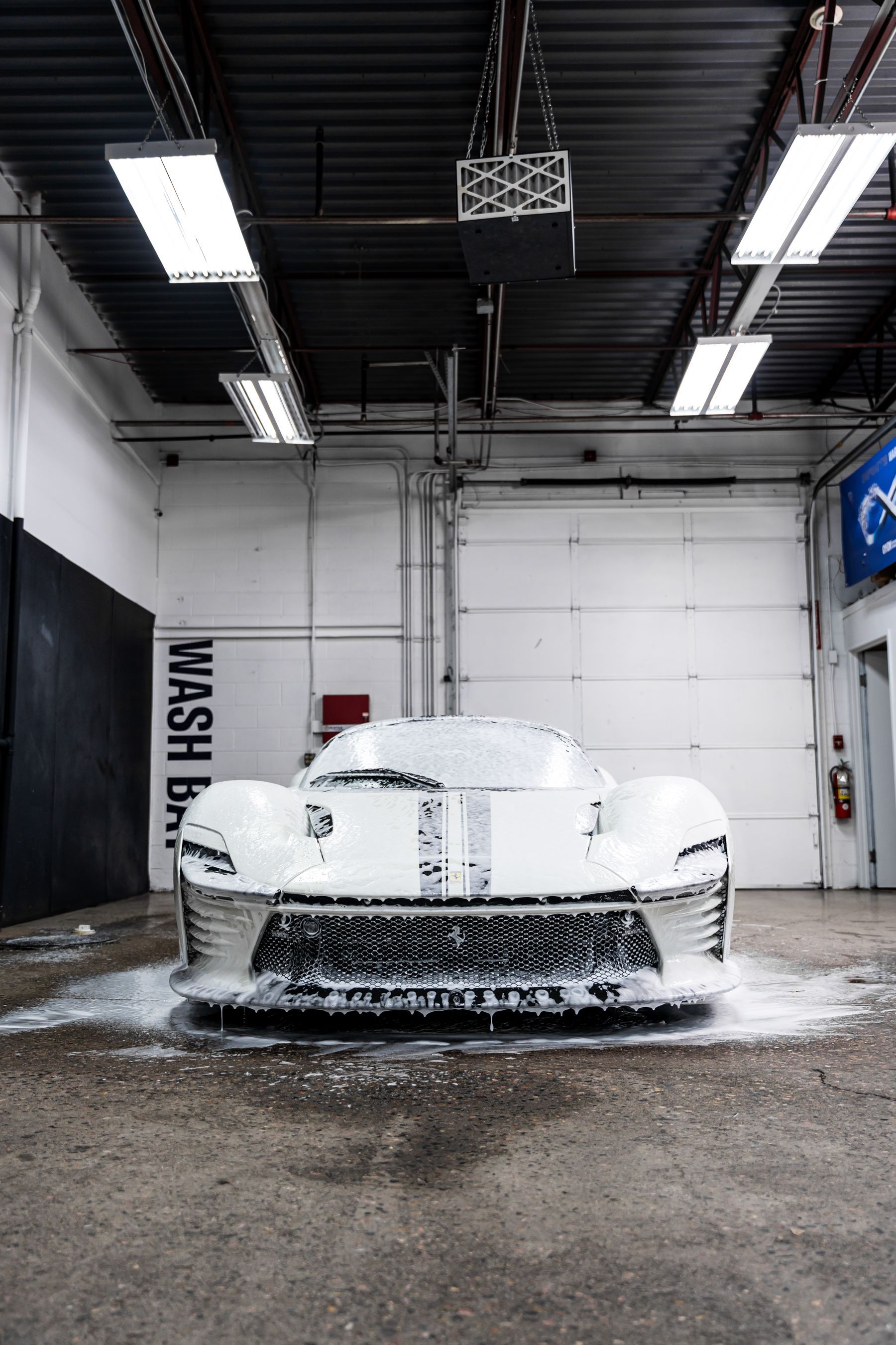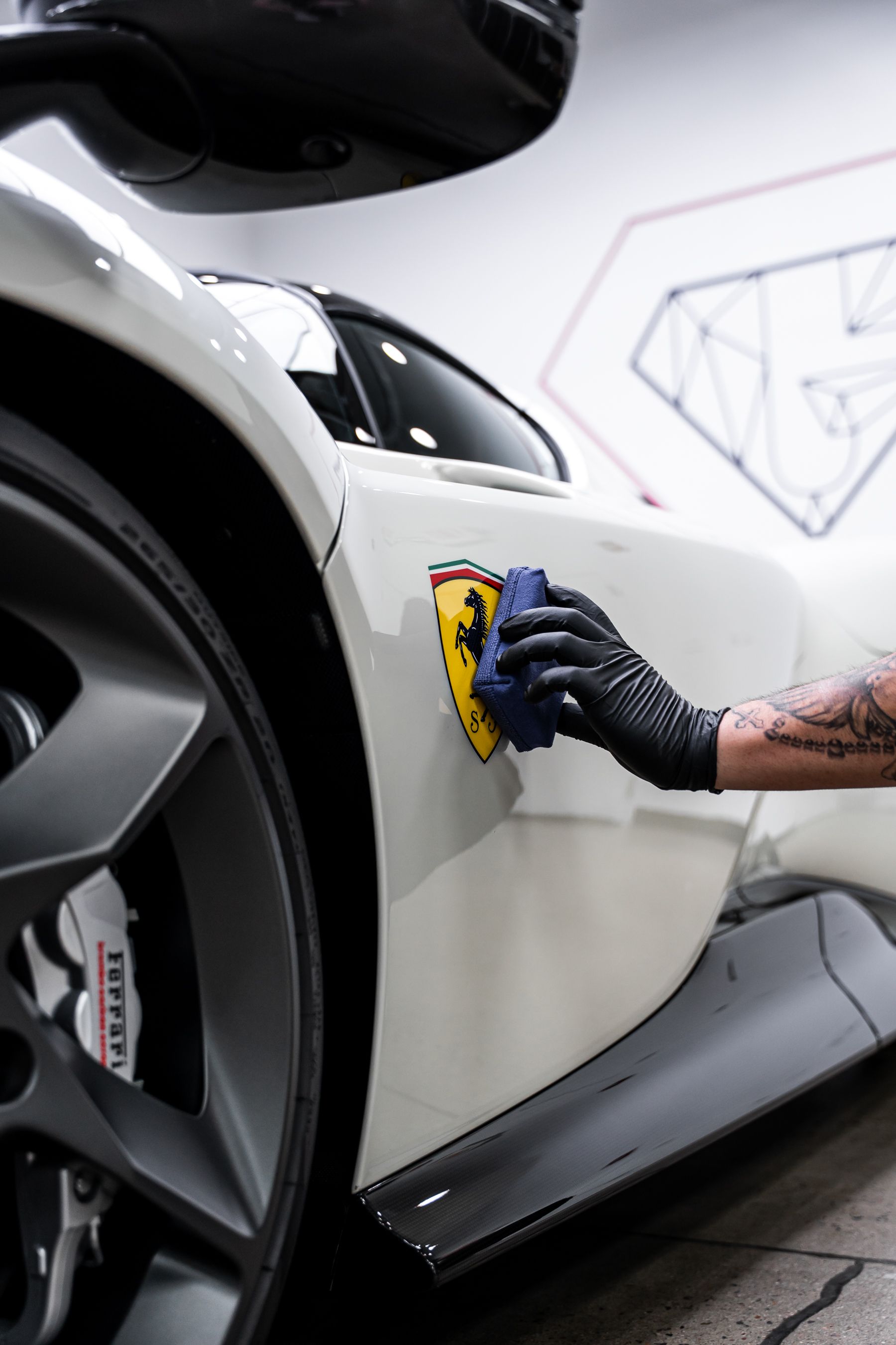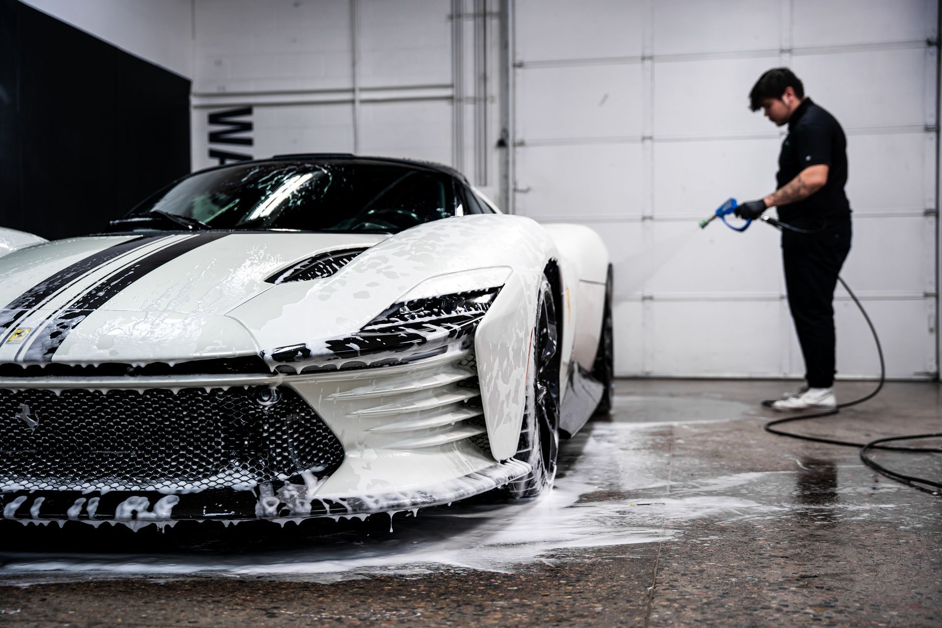 In order to give this SP3 Daytona maximum protection from whatever the road throws at it, this client opted for our Level 2 Ceramic Coating System. This is our most comprehensive coating system, giving this Ferrari extended ceramic coating coverage and durability. For a vehicle like this, a ceramic coating is a no-brainer due to the UV and chemical protection as well as the hydrophobicity that coatings offer.