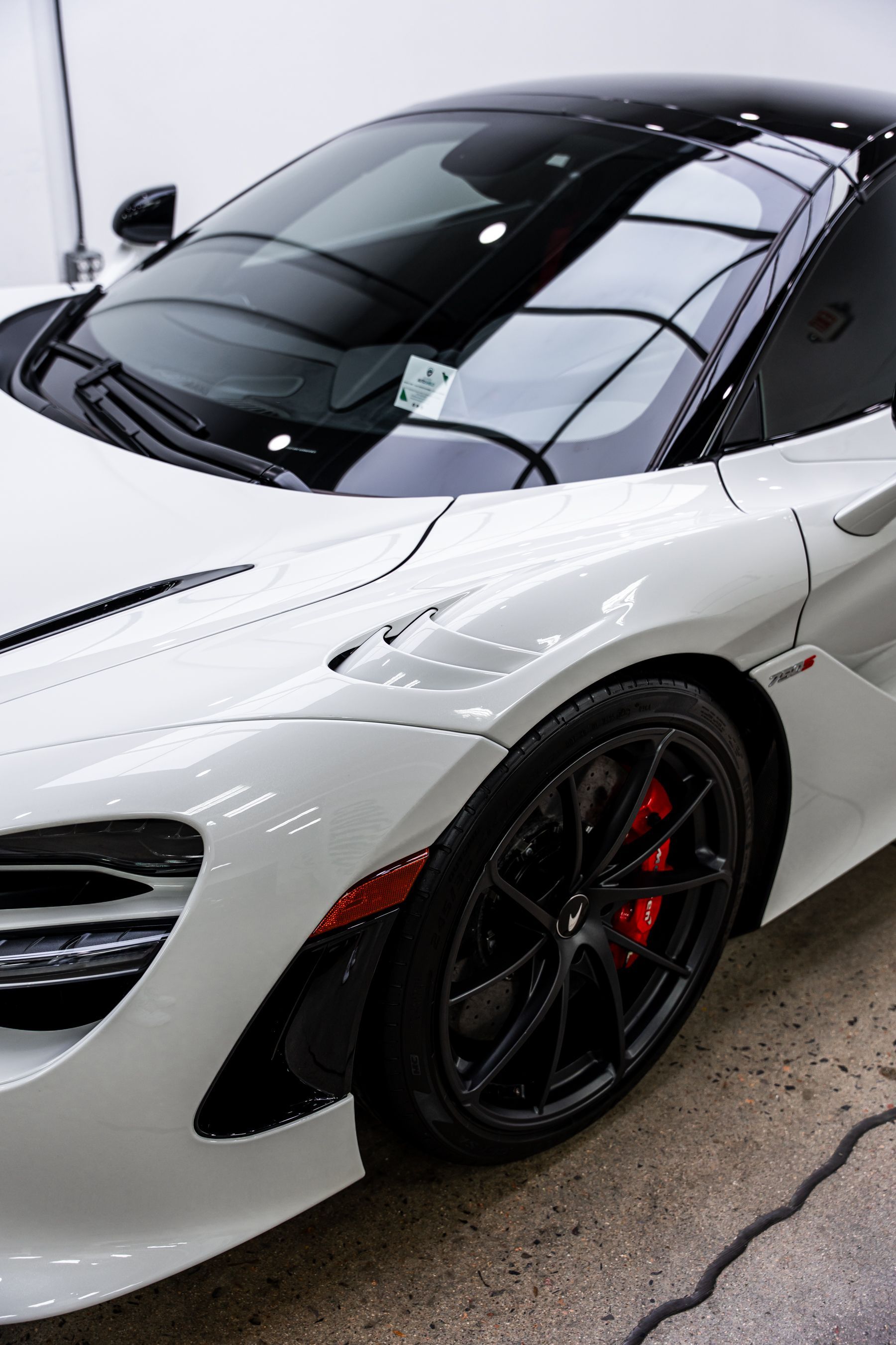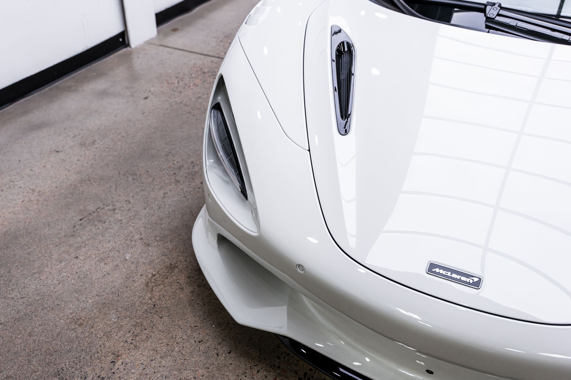 The owner of this McLaren 750S opted for our Full-Body Paint Protection Film Package which includes 8 mil thick clear bra on all exterior painted, carbon fiber or gloss black surfaces. PPF is an excellent solution for protecting your vehicle as it shields your paint from rock chips, scratches, UV damage and other minor impacts.