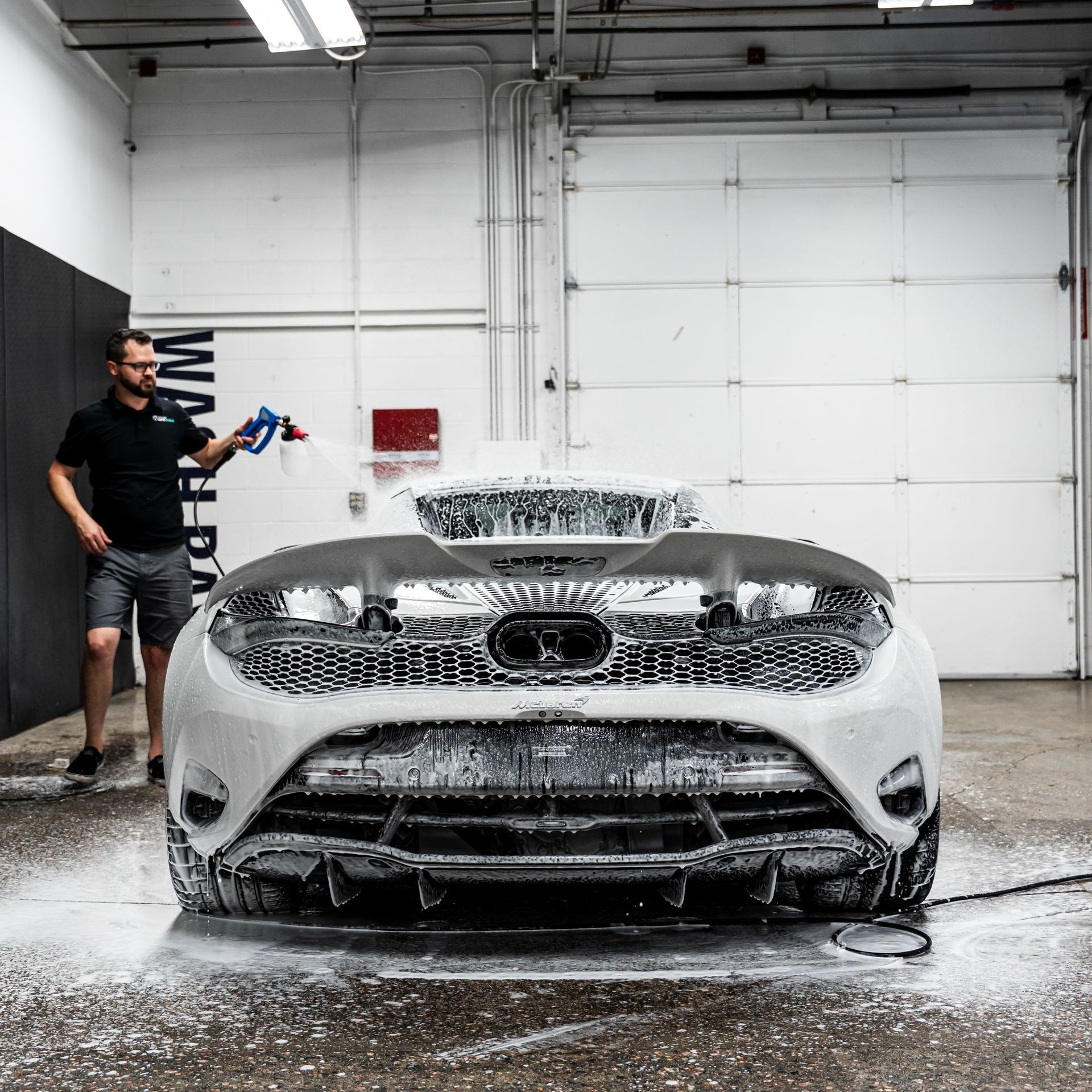 Gyeon Q2M Foam over the entire vehicle. This will remove the majority of large surface contaminants, enabling us to do a contact wash with significantly lower risk of scratching or swirling.
