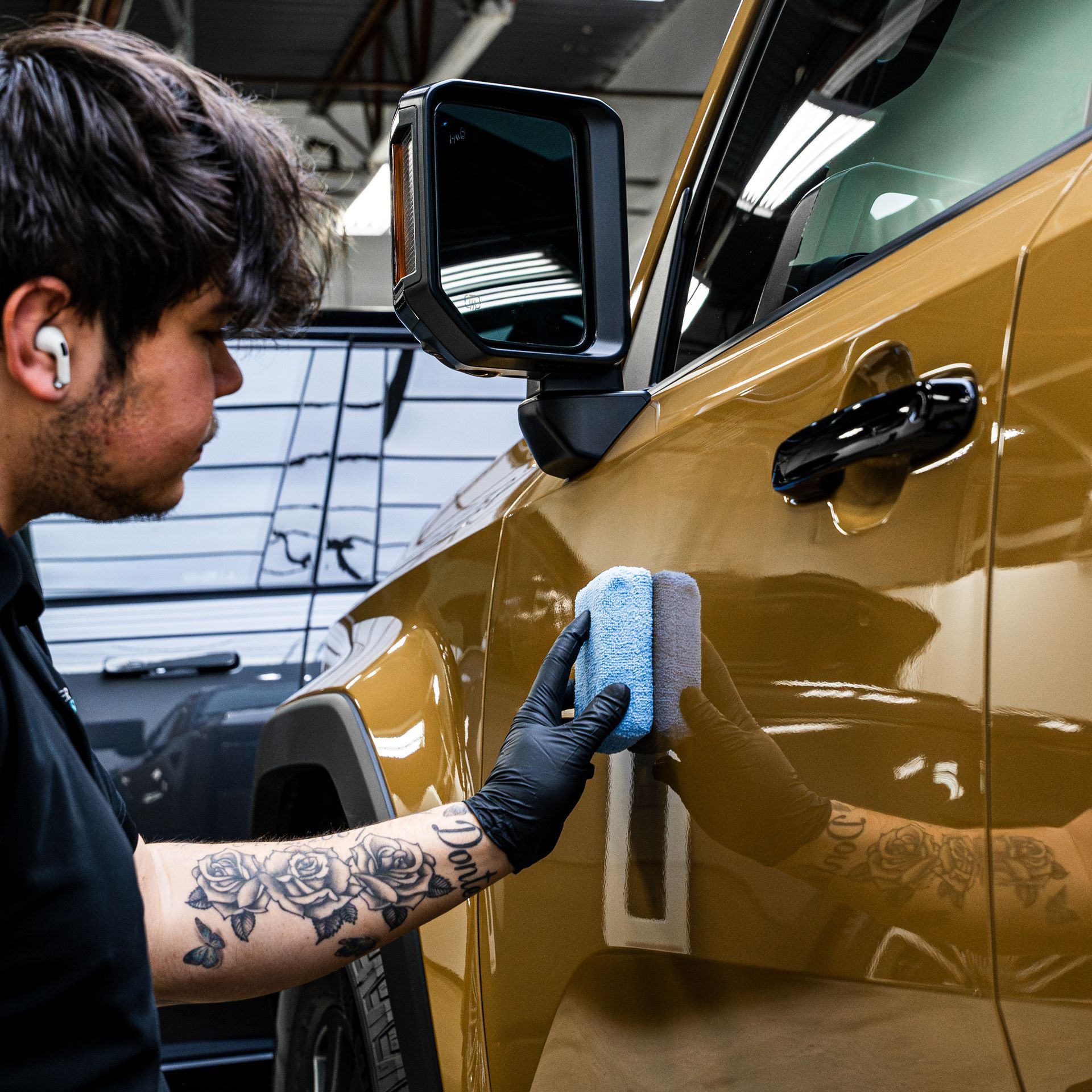 We’ll repeat this process for every panel to finish the first layer. Using the same method, we’ll work our way around the car with the second layer of ceramic coating. Once we finish, our detailers will install a dedicated coating on the wheel faces and windshield to round out the ceramic coating process.